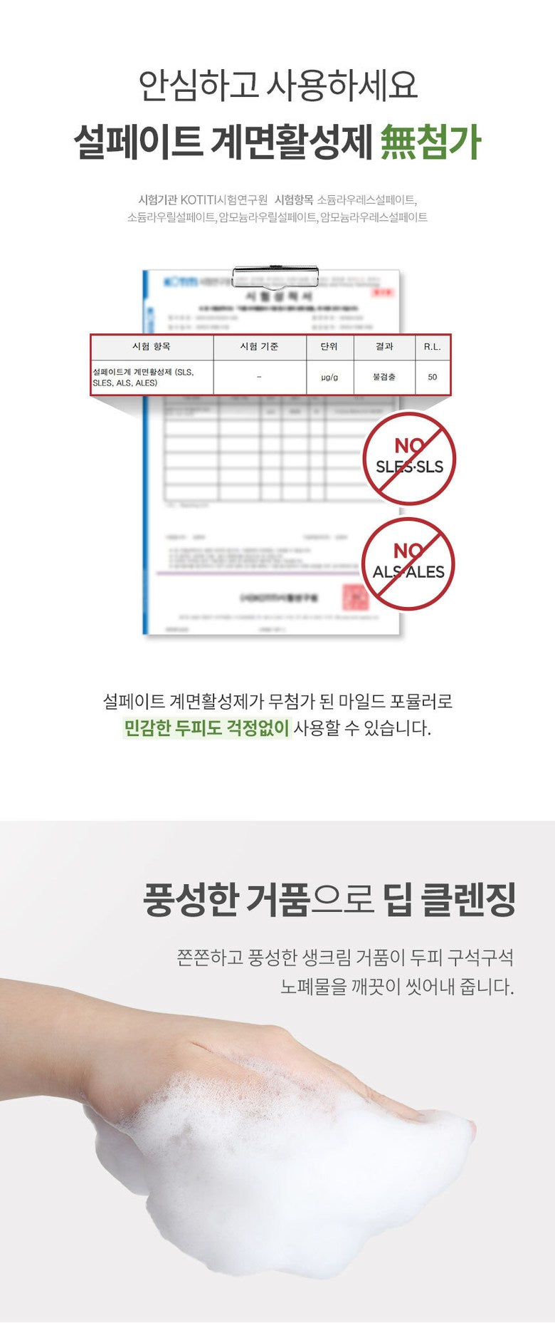 It contains plant-derived surfactant derived from coconut fruit, which relieves the burden on the scalp and removes wastes.