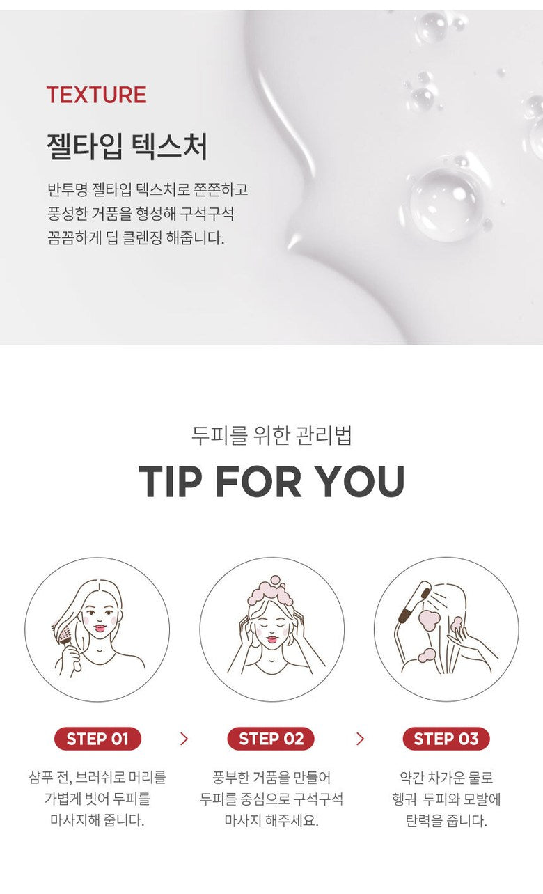 Jeju cypress water, which contains a large amount of phytoncide and has strong purifying power, makes the scalp clear and clean.