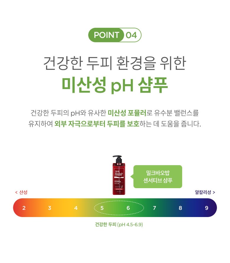 POINT 04: Slightly Acidic pH Shampoo for a Healthy Scalp Environment
