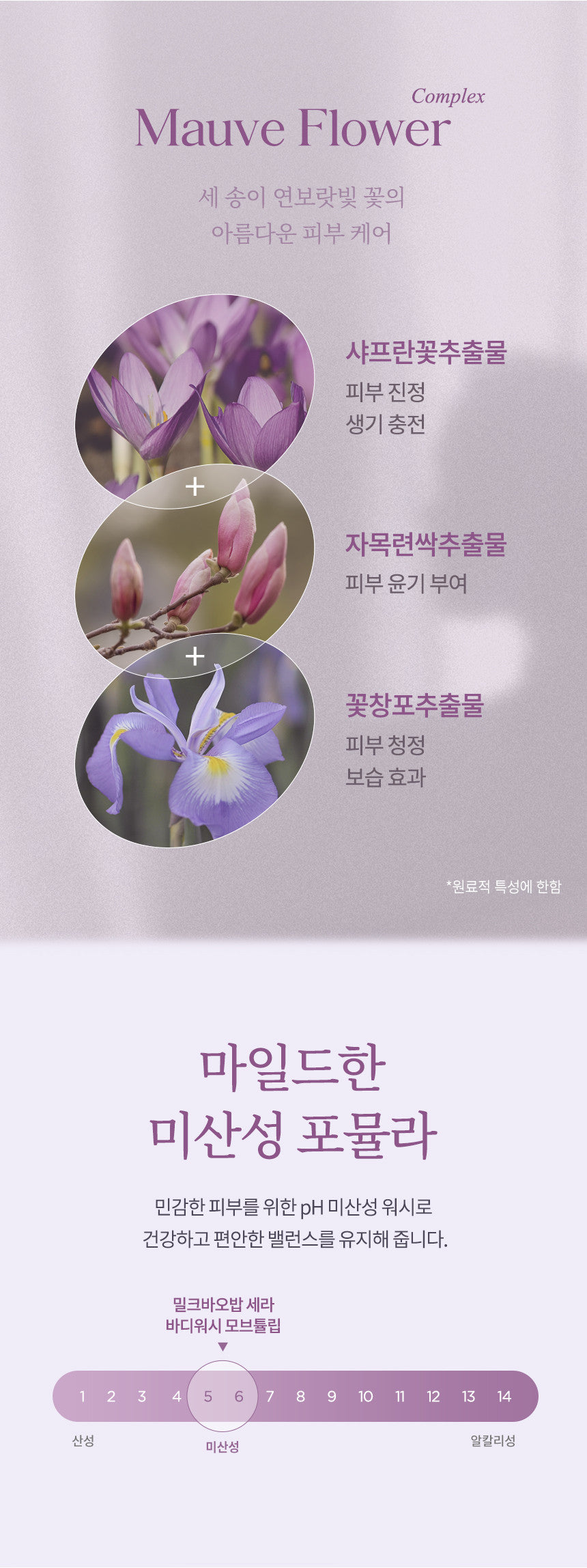 This body wash is enriched with a unique blend of mauve flower extracts, known for their gentle yet effective benefits in skin care. -
