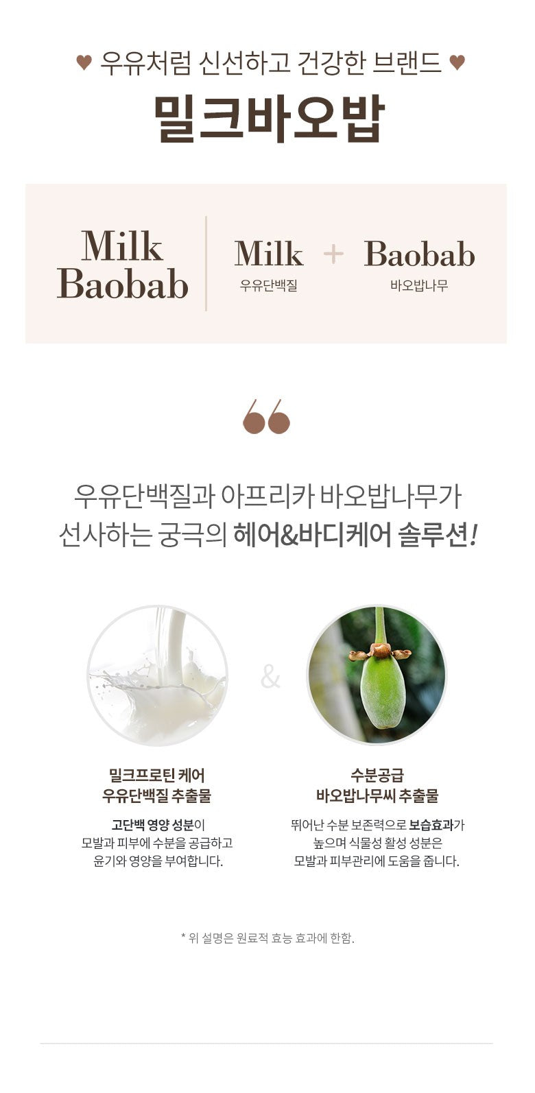 The high-protein content from milk protein, combined with the hydrating properties of baobab seed extract, ensures your hair and skin are adequately moisturized and nourished, enhancing both health and appearance.