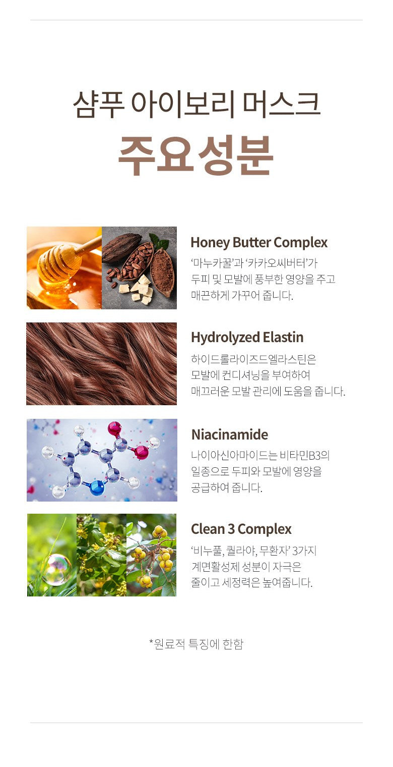 - Honey Butter Complex: A luxurious blend of Manuka honey and cacao seed butter provides rich nutrition, revitalizing both the scalp and hair.