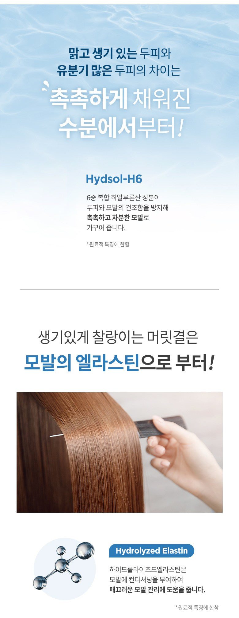 Experience the powerful moisturizing benefits of Hydsol-H6, a six-layer complex hyaluronic acid that prevents drying, leaving your hair moist and soothed. Hydrolyzed elastin provides conditioning, maintaining hair’s smoothness and flexibility, thanks to its inherent elastic protein components.