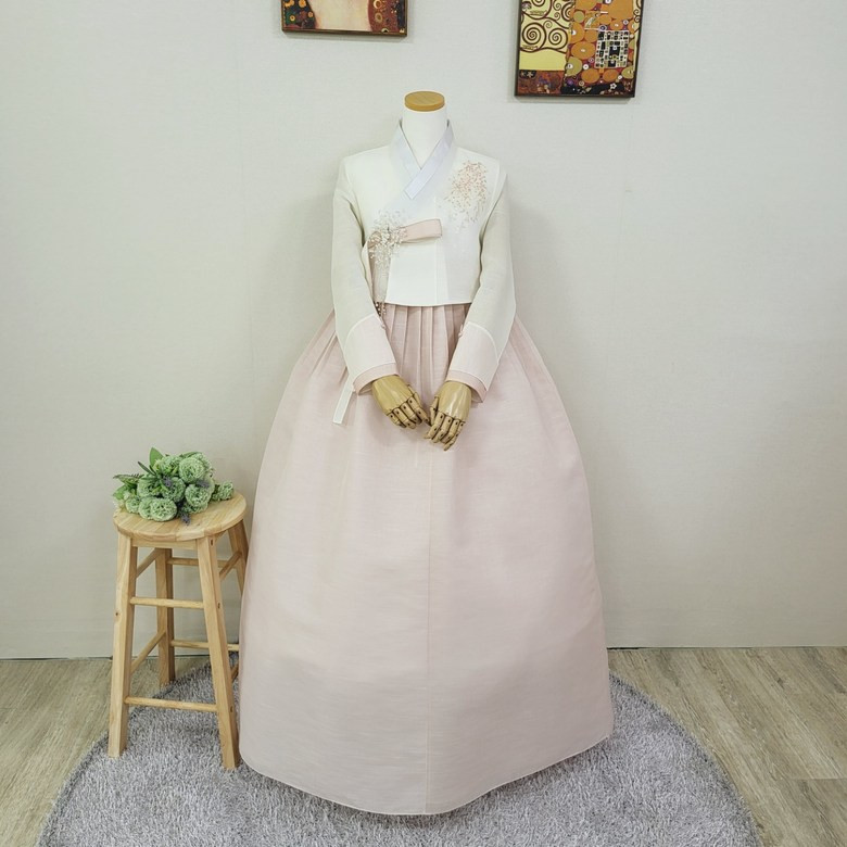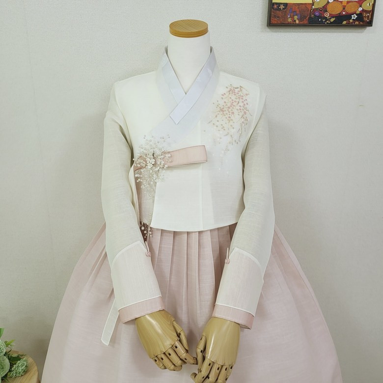 O hanbok Milky Way é uma verdadeira obra de arte! Cada bordado traz à tona a riqueza cultural coreana. A paleta de rosa leve combina com qualquer evento festivo e torna o uso super confortável.