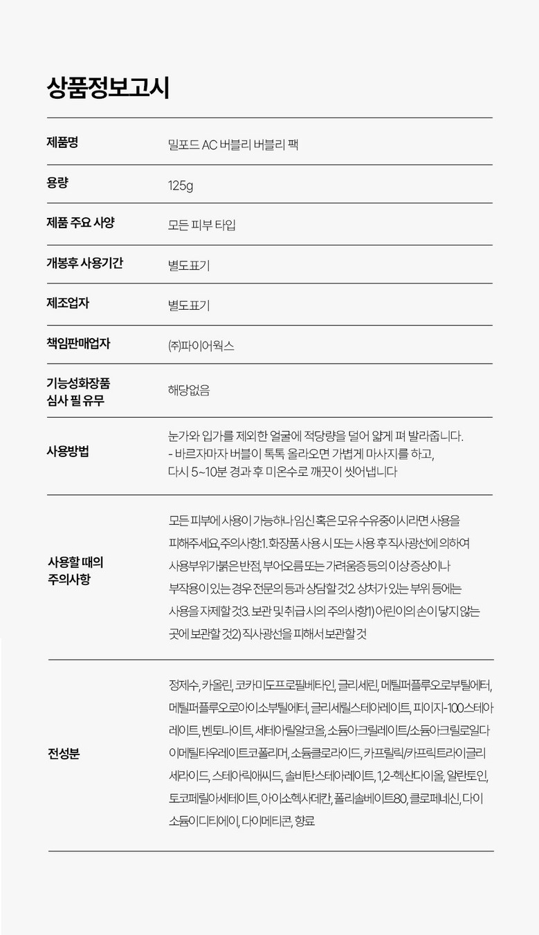 | Product Name | Millford AC Bubbly Bubbly Wash-Off Pack |