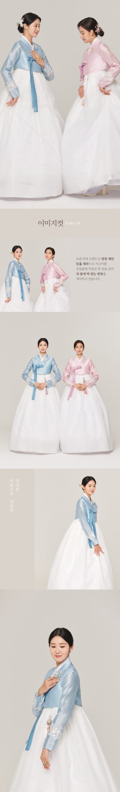 The sleeves are meticulously finished with high-quality fabric, enhancing the overall elegance and charm of the hanbok.