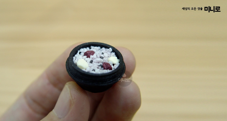 Description: A detailed miniature of nutritious Korean five-grain rice (ogokbap), featuring realistic multigrain textures and natural colors.