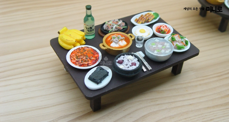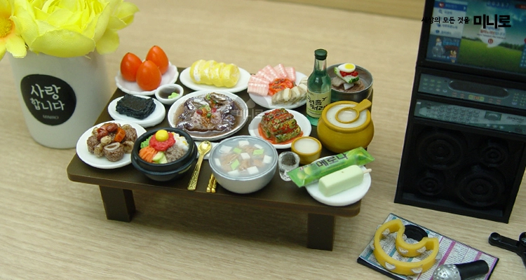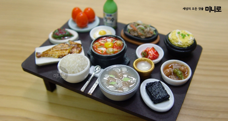 Before setting your miniature meal, choose the table size first, then select the right combination of rice and soups to create a realistic Korean dining scene.