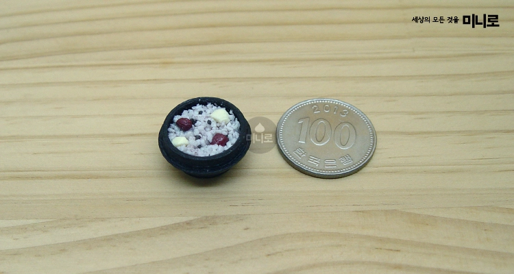 Description: A detailed miniature of nutritious Korean five-grain rice (ogokbap), featuring realistic multigrain textures and natural colors.