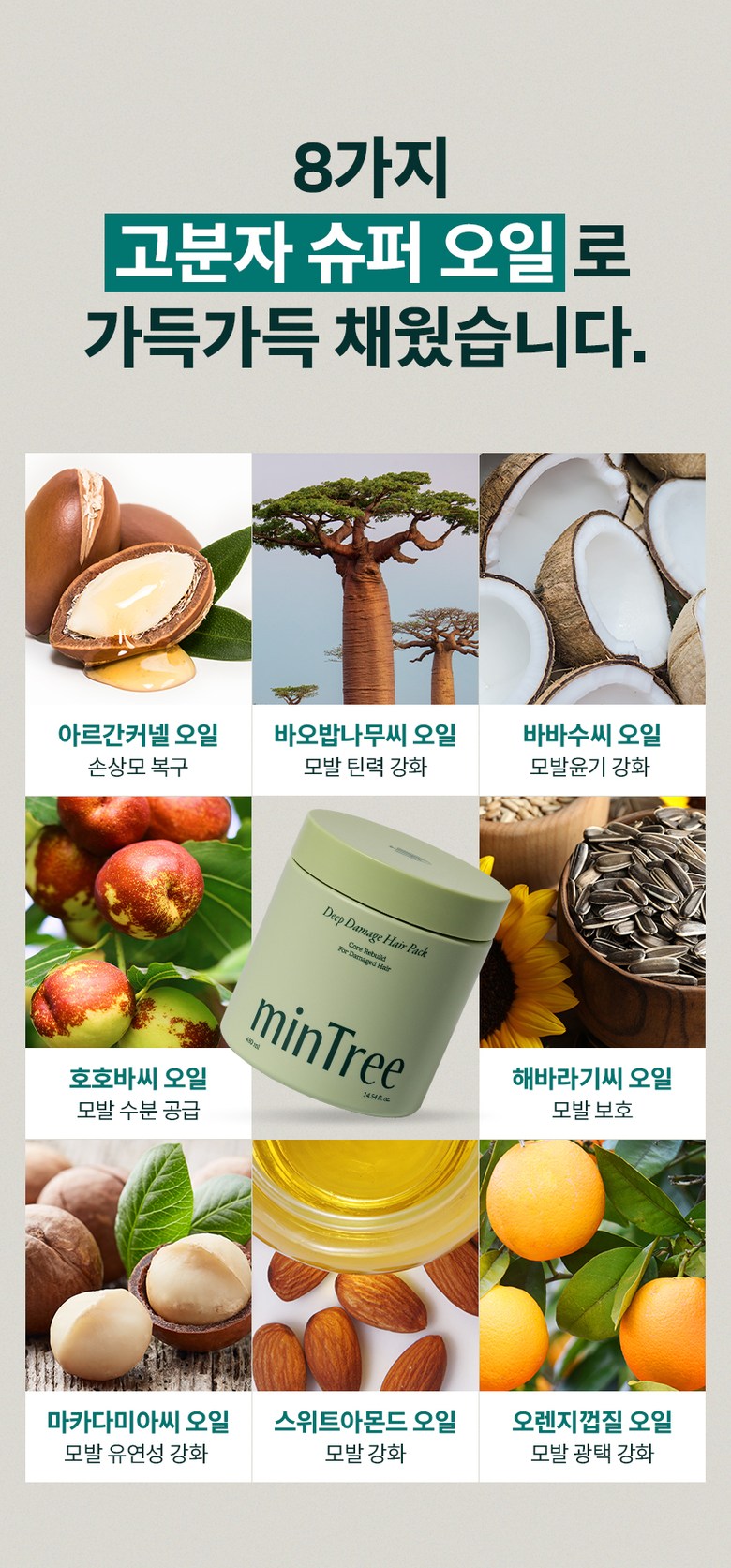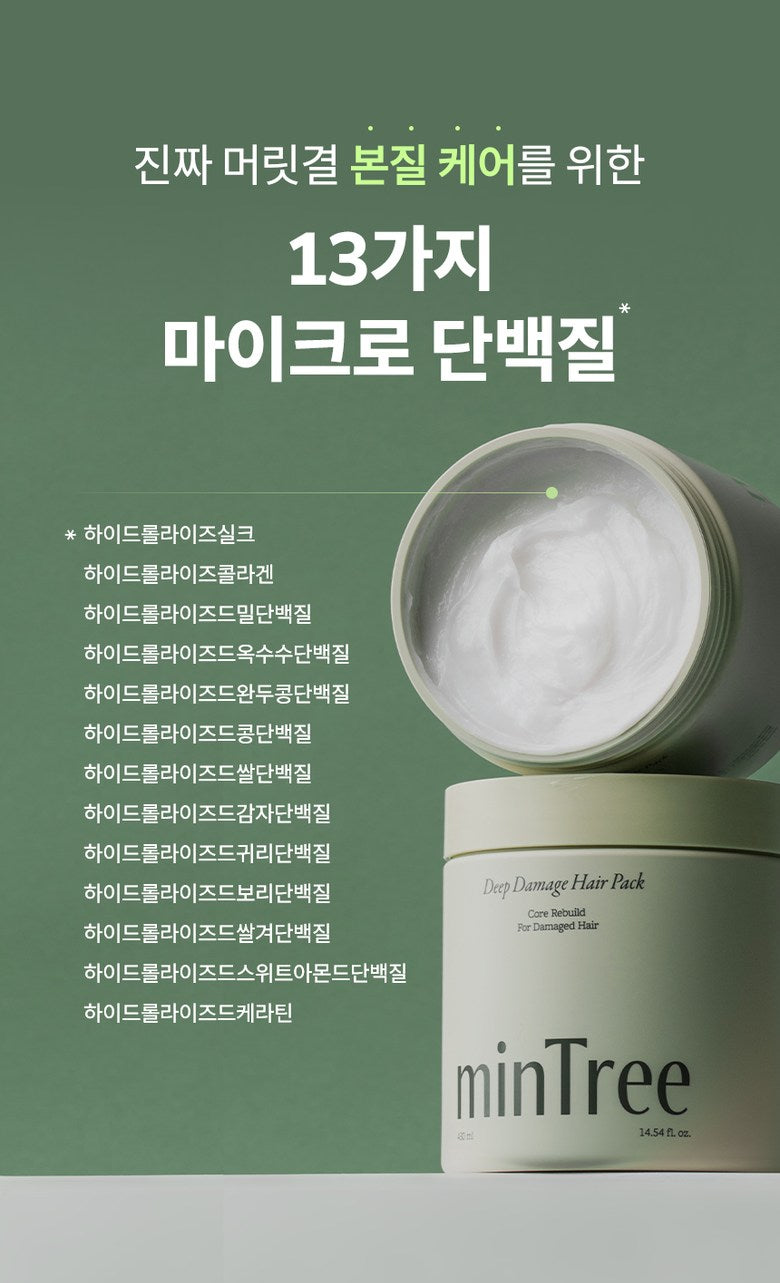 The minTree Deep Damage Hair Pack contains 13 micro proteins to fully nourish and repair your hair from root to tip: