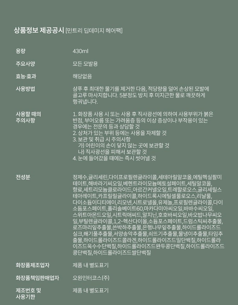 minTree Deep Damage Hair Pack 430ml