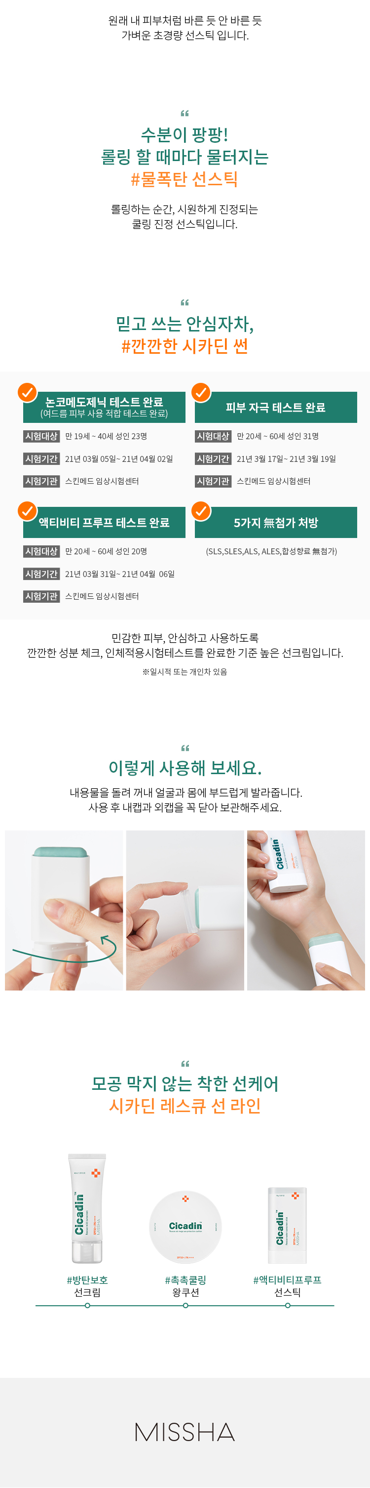 Stay protected on the go with MISSHA’s Cicadin Rescue Water Sun Stick. This hydrating sun stick combines cica soothing with convenient, mess-free sun protection.