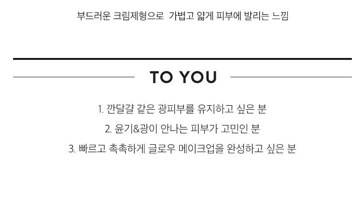 - Smoothing Base + Healthy Glow: The glow formula gets thinly adhered to the skin, building a smooth base just like the surface of a boiled eff with added glow.