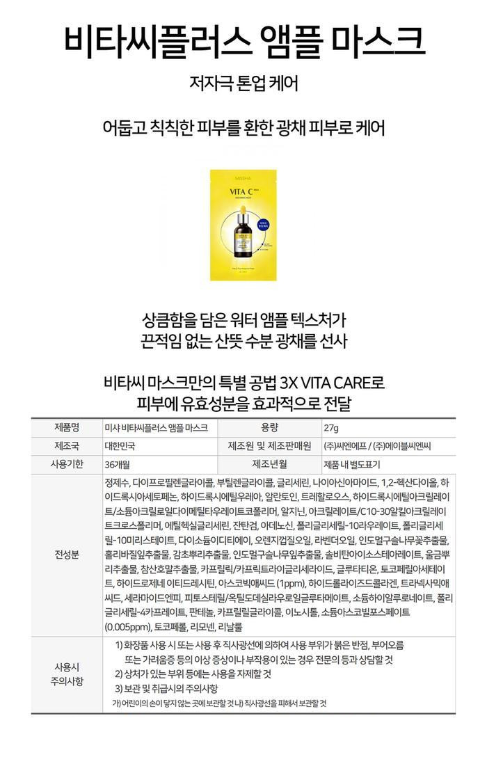 The Missha Vita C Plus Ampoule Beauty Mask is a moisturising, brightening sheet mask with concentrated Vitamin C to lighten dark spots and fix uneven skin tone while firming the skin for a more vibrant complexion. Formulated with Vita C Liposome Formula that encapsulates 99% pure Vitamin C and collagen in a microcapsule to quickly deliver effective skincare ingredients into the skin for a brighter and firmer-looking complexion. The microfiber mask sheet with high adherence fits the face shape and helps deliver nourishment thoroughly to the skin.