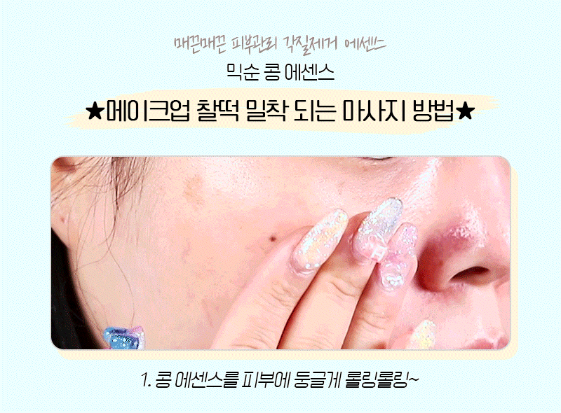 2. When you feel dead skin cells and other residues, pump Bean Essence one more time, and then roll a more intensive massage on the part where the residue is.