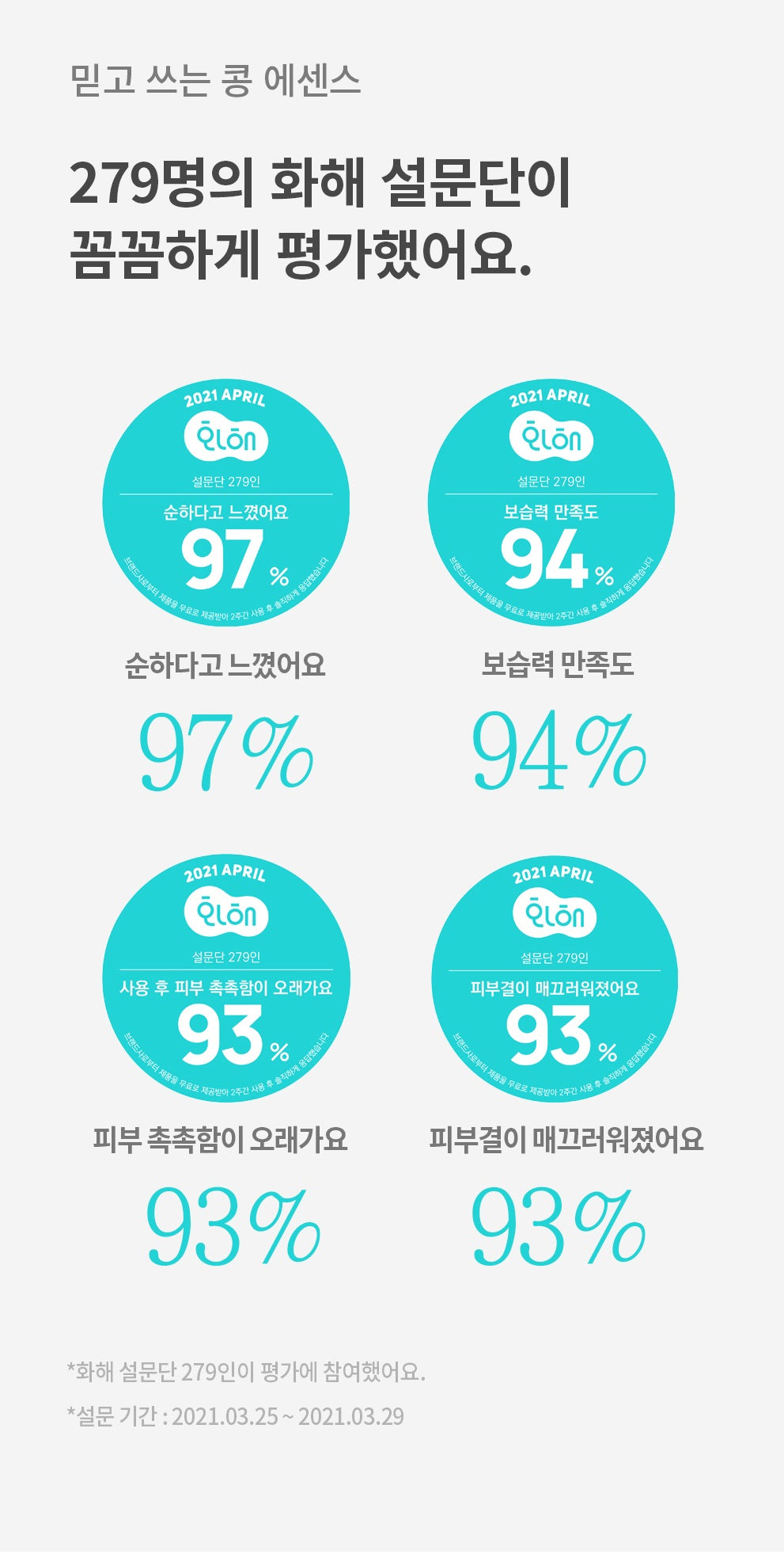 As a result of human application test, “Bean Essence” is judged to help improve skin keratin, moisture, and sebum