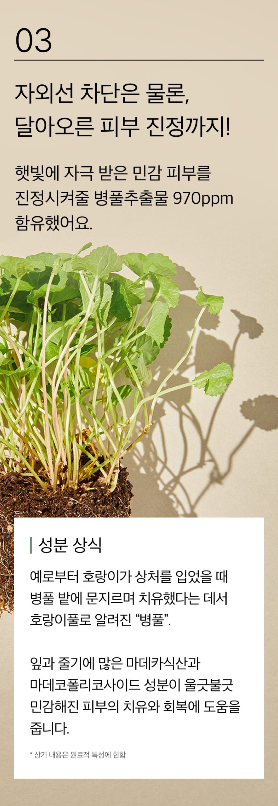 Enriched with 970ppm of centella asiatica extract, the sun cream offers soothing and moisturizing benefits. This key ingredient is known for its ability to calm and comfort sun-exposed skin, providing a dual action of protection and care.