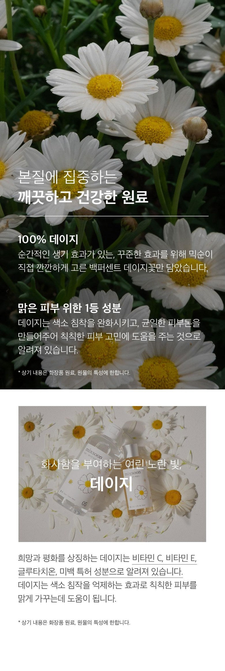 Experience the renowned convergence effect of Daisy Flower Extract. Known globally for its efficacy, it revitalizes your skin, bringing back its natural, clear glow.
