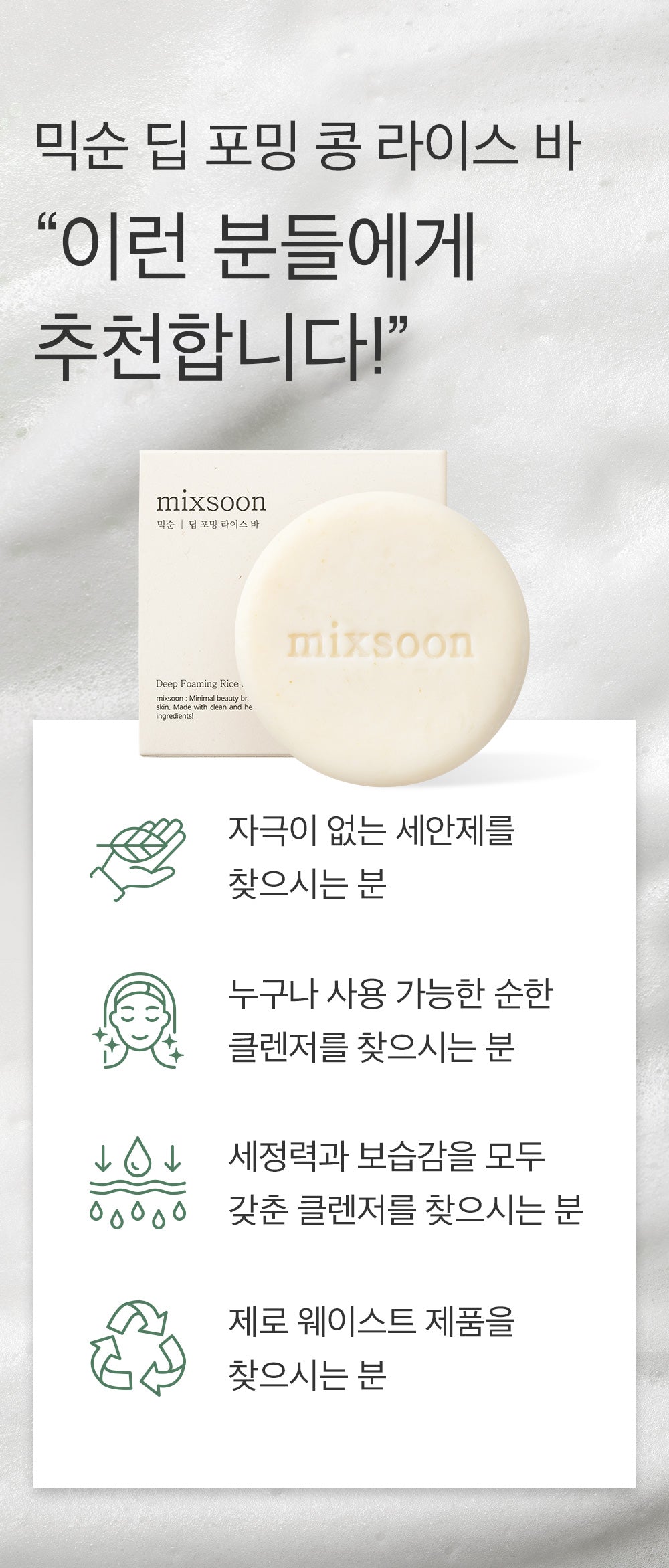 あのね、このmixsoonディープフォーミングソイビーンズライスバーは本当にびっくりするほど素晴らしい!肌に使うと、すぐにクレンジング効果が感じられるんだよ。大豆の発酵エキスが入ってて、お肌を守る力強い味方になってくれている気分。また米粉のおかげで優しく汚れも取れてしっとり感もUP。本当お薦めなので試してみるべき!オートミール成分まで入ってて、さらなる保湿を助けてくれるなんてもったいないくらい。ただ、自分の毛穴目指して贅沢なリフレッシュタイムを設計したい時には欠かせません。