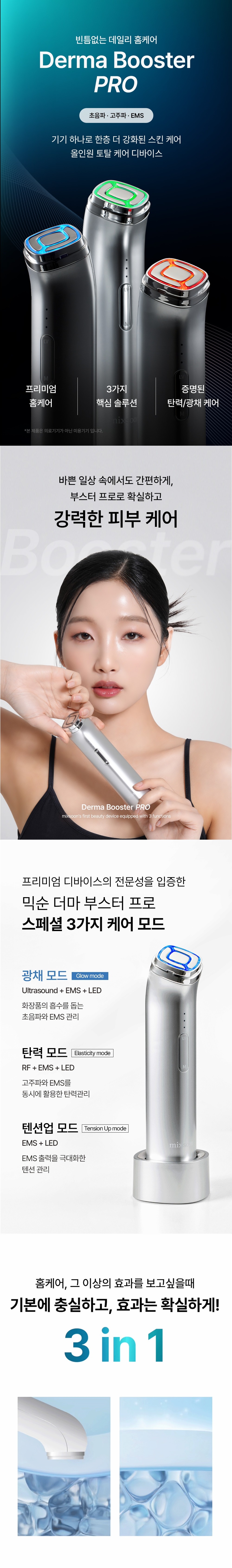 The MIXSOON Derma Booster Pro integrates three essential technologies, allowing you to customize your treatment for specific skin concerns. Each mode is intuitively designed for maximum impact.