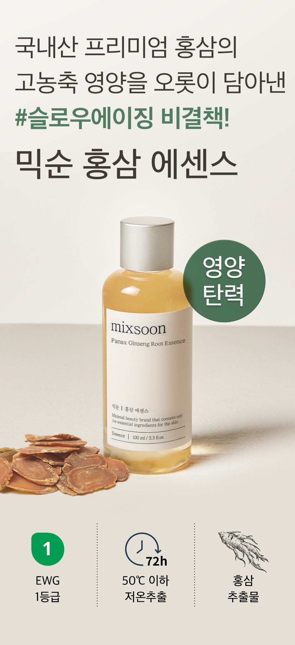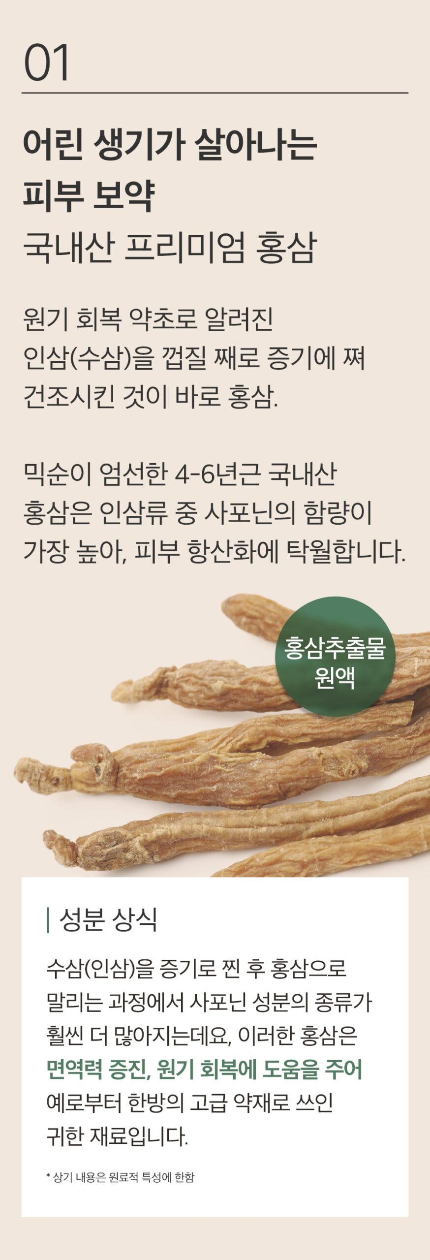 Our essence is crafted from real red ginseng, specifically selected from 4-6 year old domestic sources. This highly concentrated red ginseng extract is your secret weapon against aging, offering a wealth of nutrition for your skin.