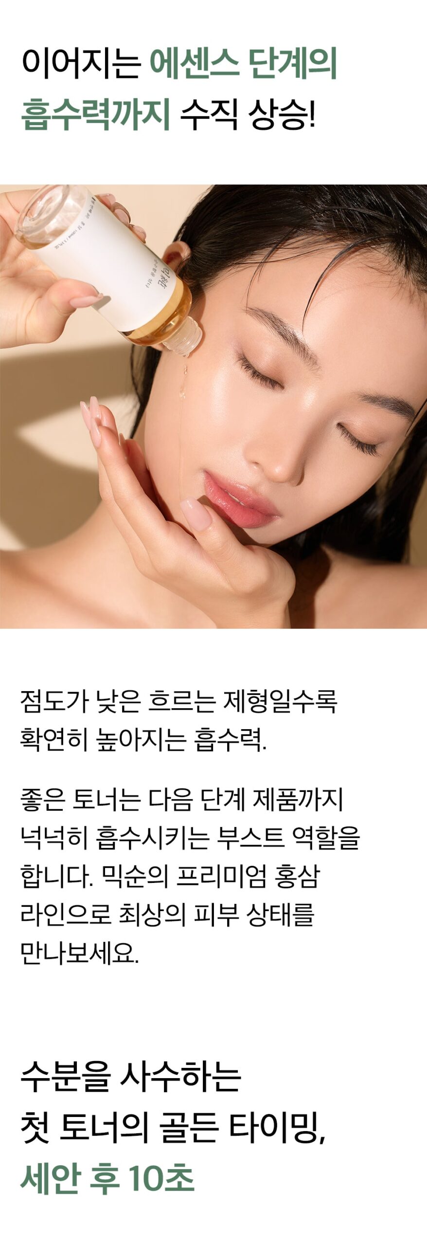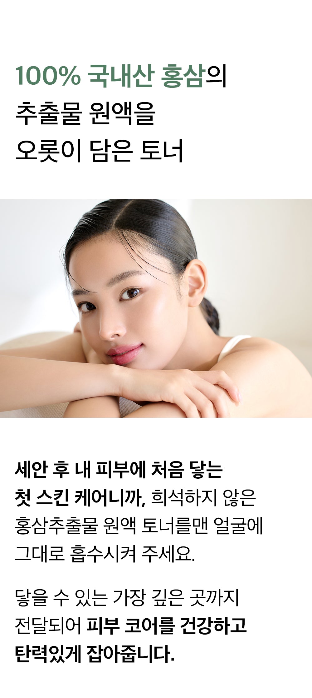 When combined with red ginseng essence, this toner provides a powerful boost of nutrients, significantly improving skin core elasticity.