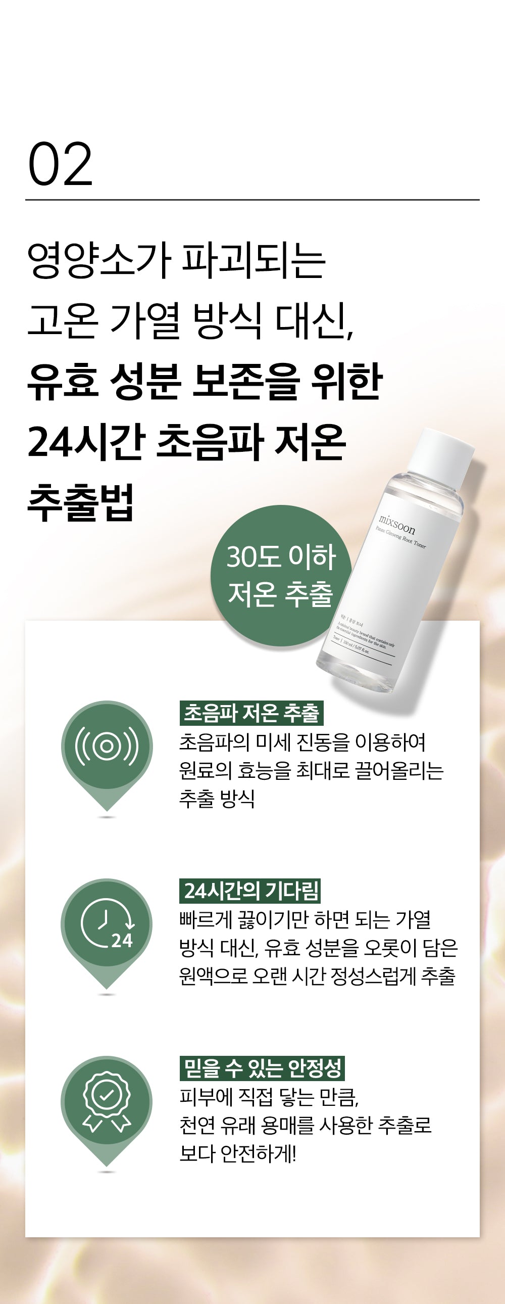 Our toner is uniquely formulated with a highly concentrated red ginseng extract, derived exclusively from 4-6 year old domestic red ginseng. This potent ingredient ensures your skin receives the full spectrum of nutrition that red ginseng has to offer.