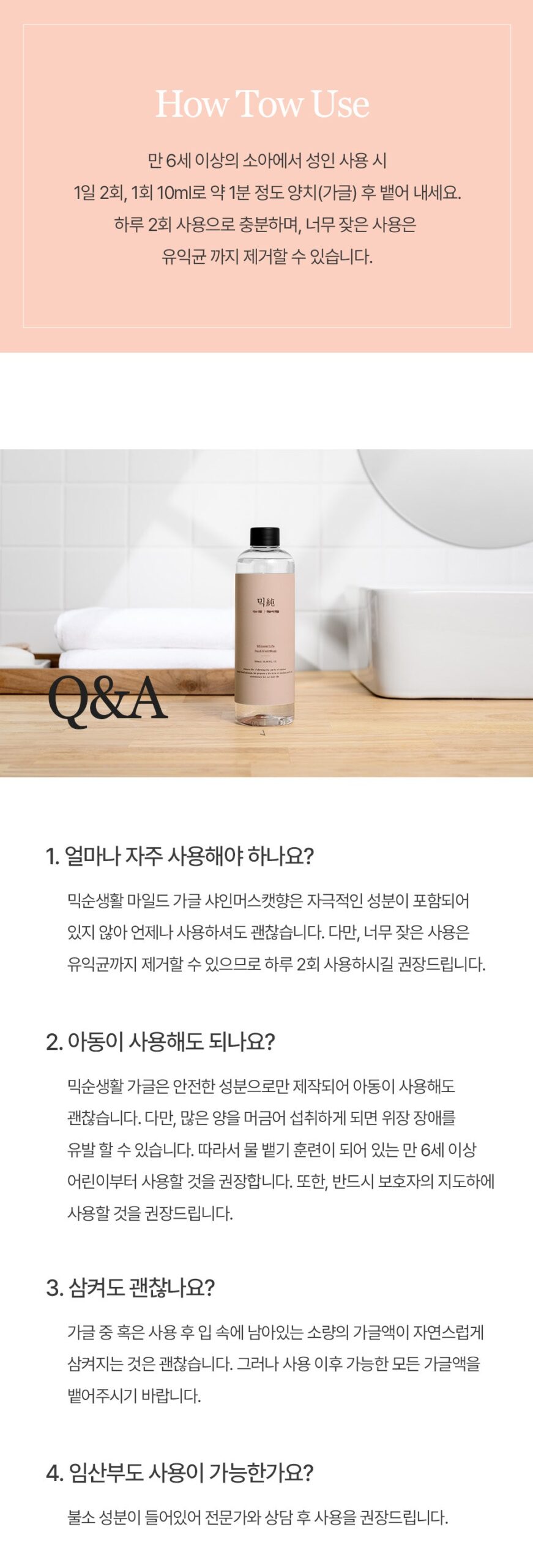 Mixsoon Life Mild Gargle is suitable for adults and children over 6 years of age. For optimal results, gargle with 10ml of mouthwash for about 1 minute, twice a day. Overuse can disrupt the balance of beneficial bacteria, so we recommend moderation.