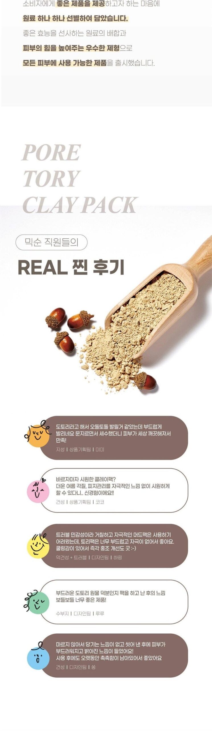 - Acorn Powder: Gently cares for dead skin cells, reaching even the intricate curves of your skin.
