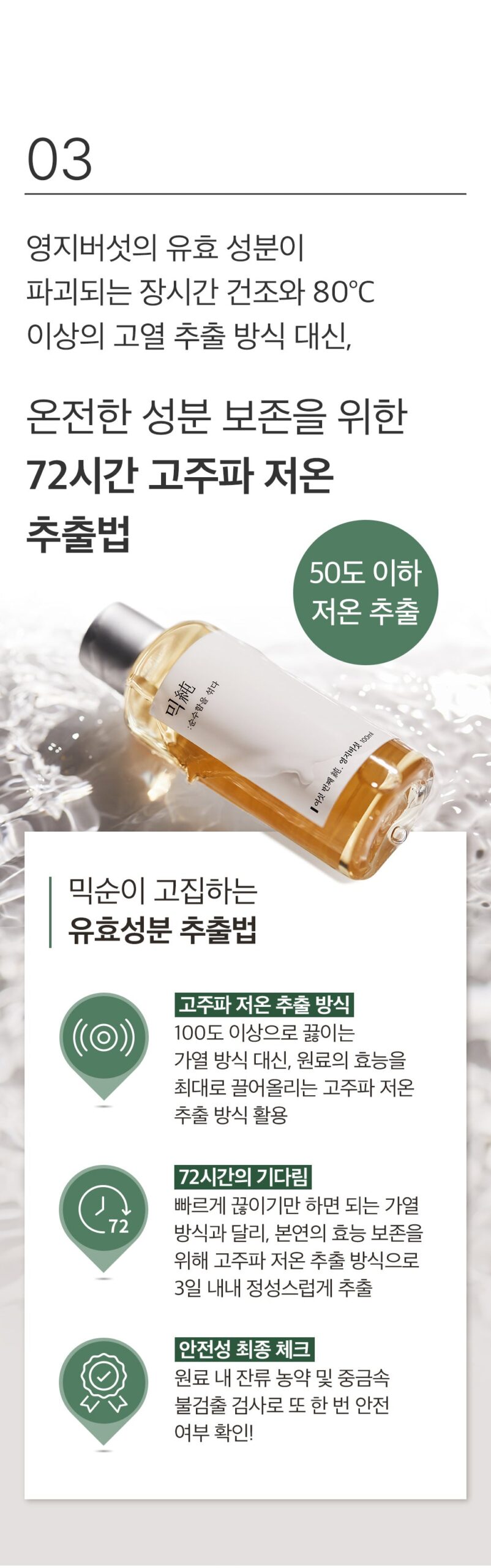 - 72-Hour Extraction Process: Ensures the preservation of the essence’s original efficacy by extracting active ingredients over three days using a low-temperature method.