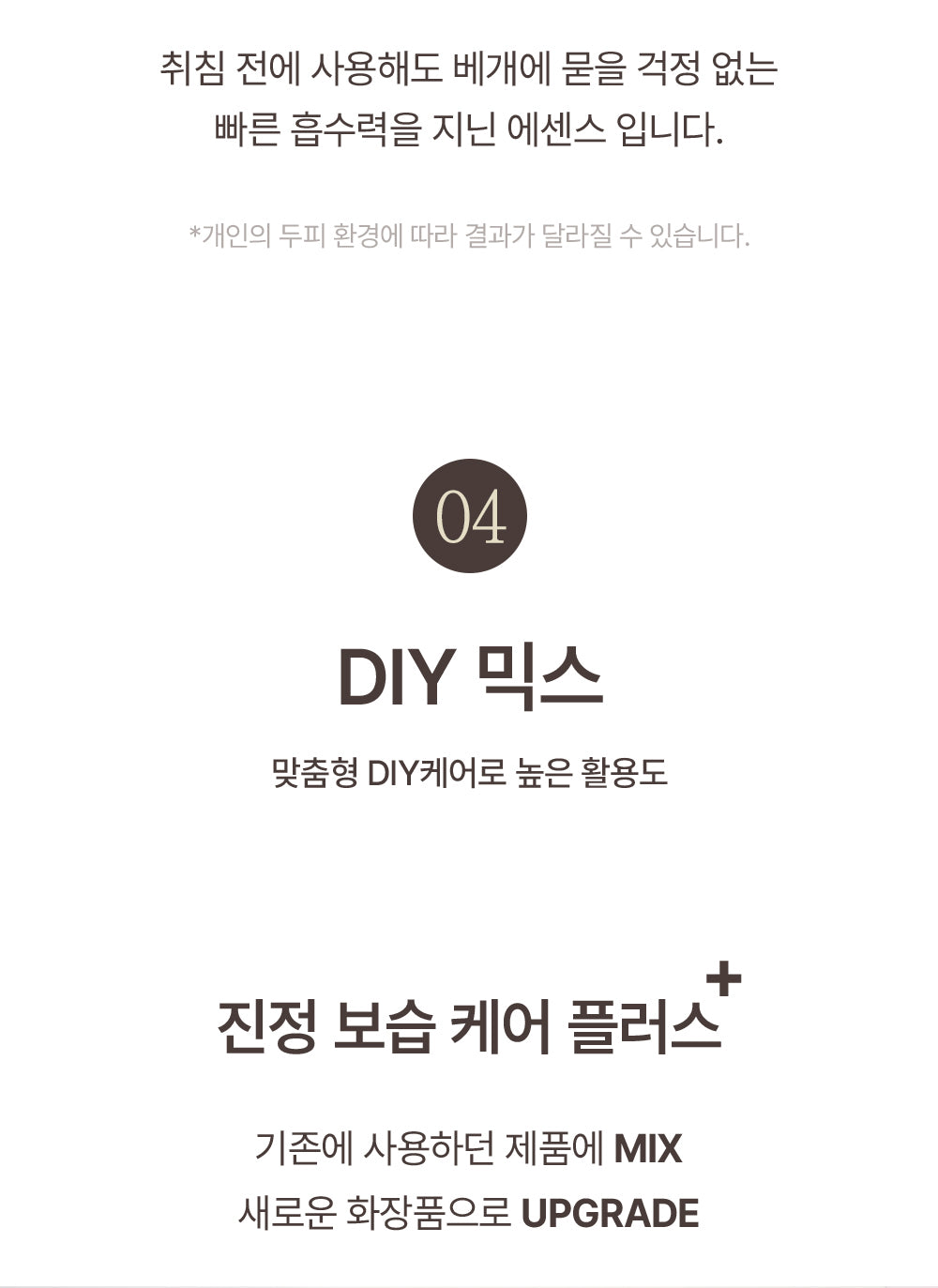 The essence absorbs quickly, providing a lightweight yet moisturizing effect. It dries with a clean finish, making it ideal even for overnight use.