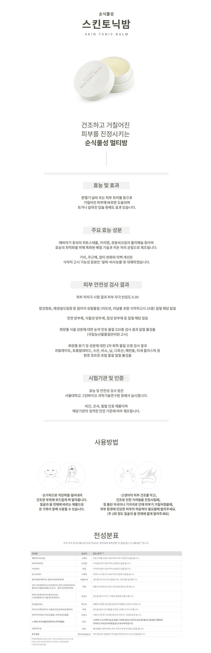 In collaboration with Seoul National University, we’ve developed 100% pure plant-based cosmetics, free from harmful ingredients and preservatives. Our multi-balm is designed to soothe dry and rough skin, making it ideal for both adults and children.