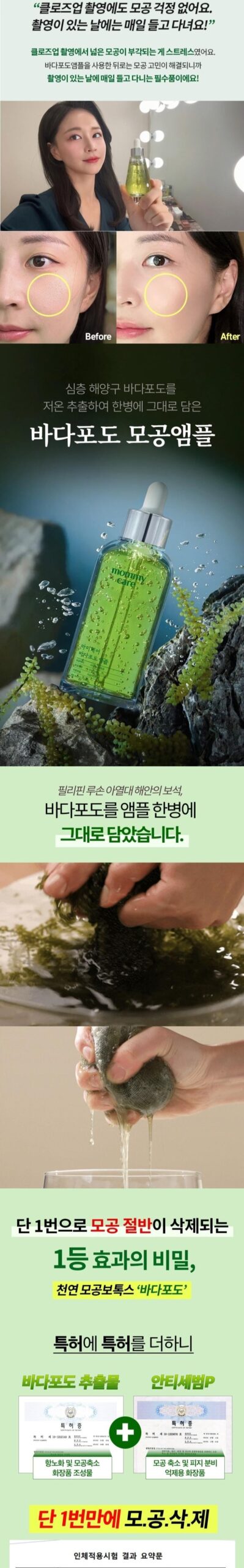 I recently tried the mommy care Pore Lifting Ampoule and was genuinely impressed with its performance. The patented formula promises impressive pore reduction, and after just one application, I noticed a significant improvement in my skin texture. The low-temperature extracted marine botanicals really seem to work; my pores appeared noticeably smaller and smoother. What stood out to me was the immediate effect lasting up to a week! Plus, knowing it has six times more fucoidan than regular seaweed made me feel good about using such natural ingredients on my skin.