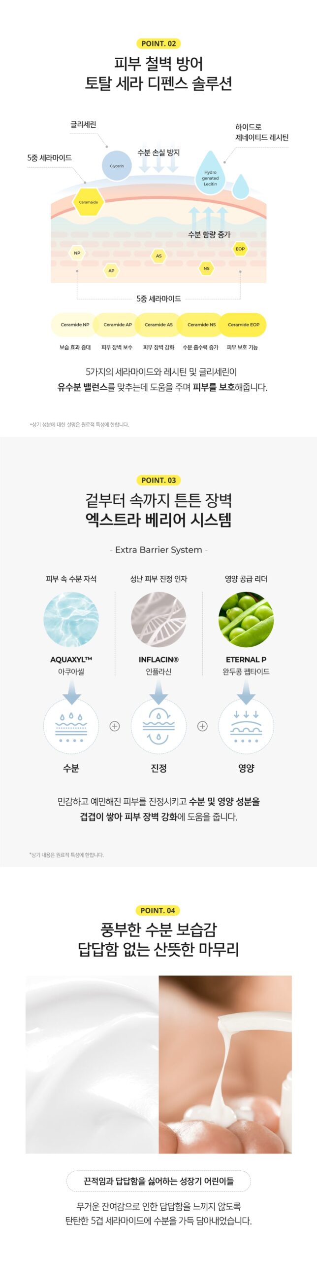 The Extra Barrier System, featuring AQUAXYL™ for hydration, Inflacin® for soothing, and EternalP for nourishment, layers these benefits to calm sensitive skin and fortify the skin barrier against irritation and dryness.
