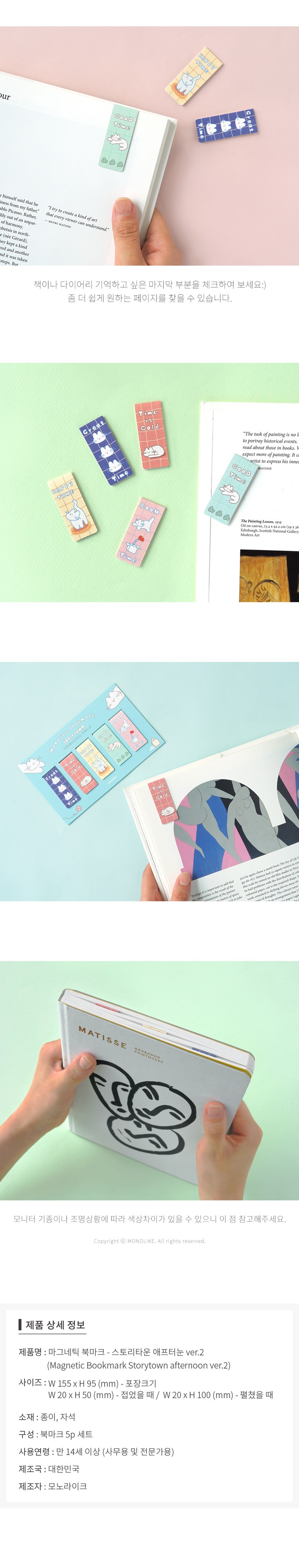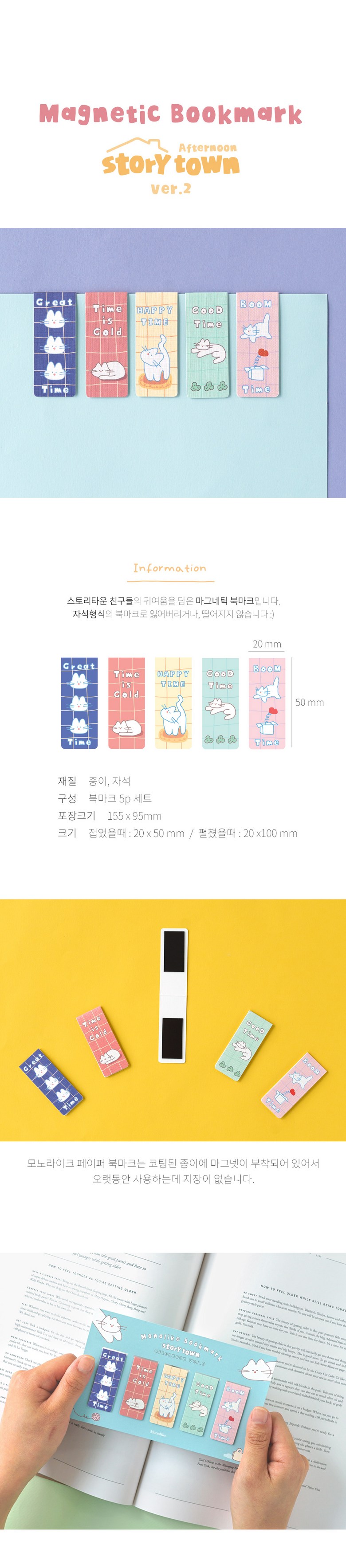 Immerse yourself in the delightful world of reading with the MONOLIKE Magnetic Bookmark Set, StoryTown Afternoon Ver.2. This charming collection of five magnetic bookmarks features adorable cat characters enjoying their serene afternoon moments, bringing a touch of whimsy and comfort to every page you turn. Designed for book lovers and cat enthusiasts alike, these bookmarks are not just practical; they’re a miniature piece of art that celebrates the joy of reading.