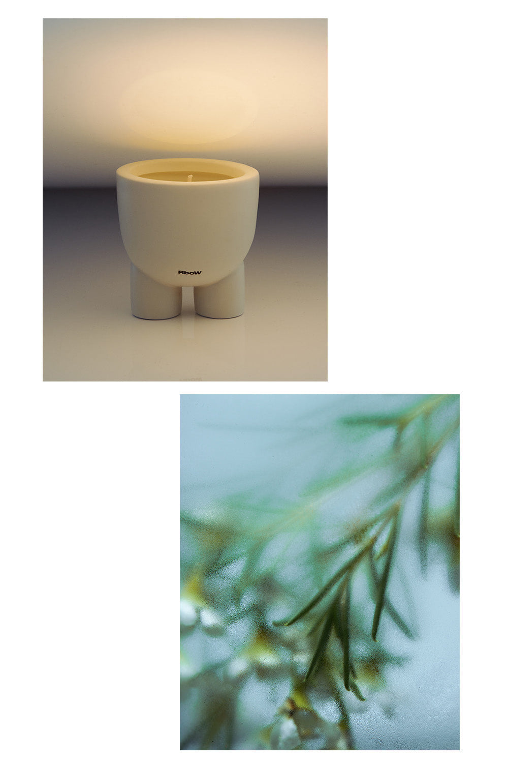 The candle is housed in a ceramic objet crafted through relentless studies in the balance of sculpture. Made from plant-based soy wax, it not only holds the fragrance but also visually enhances any room with its presence. The soft upper sphere gently illuminates the surroundings, integrating harmoniously with your living space.