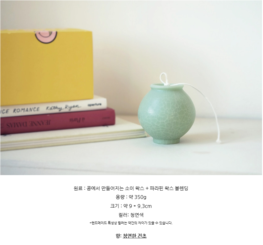 More than just a candle, this Korean traditional ceramic-inspired object serves as an exquisite piece of home decor. Its elegant form and soothing celadon color make it a versatile addition to any living room, bedroom, or office, effortlessly adding a touch of peaceful sophistication.