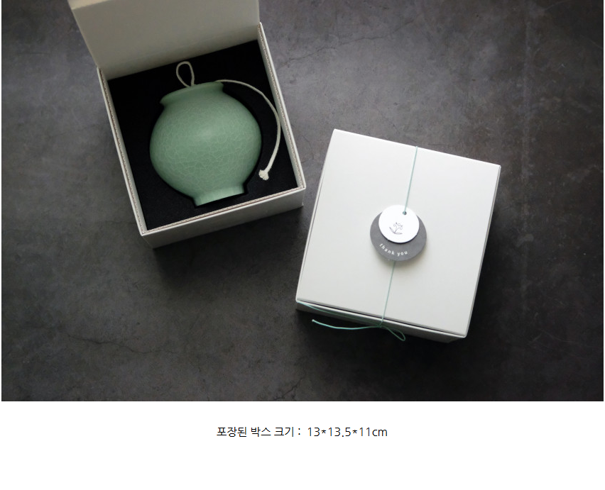 Each UNJO Mansion Moon Jar Aqua Celadon Object Candle arrives beautifully packaged in a sturdy white gift box, ensuring it reaches you or your recipient in pristine condition. The elegant presentation, often adorned with a “thank you” tag, makes it perfectly ready for immediate gifting.