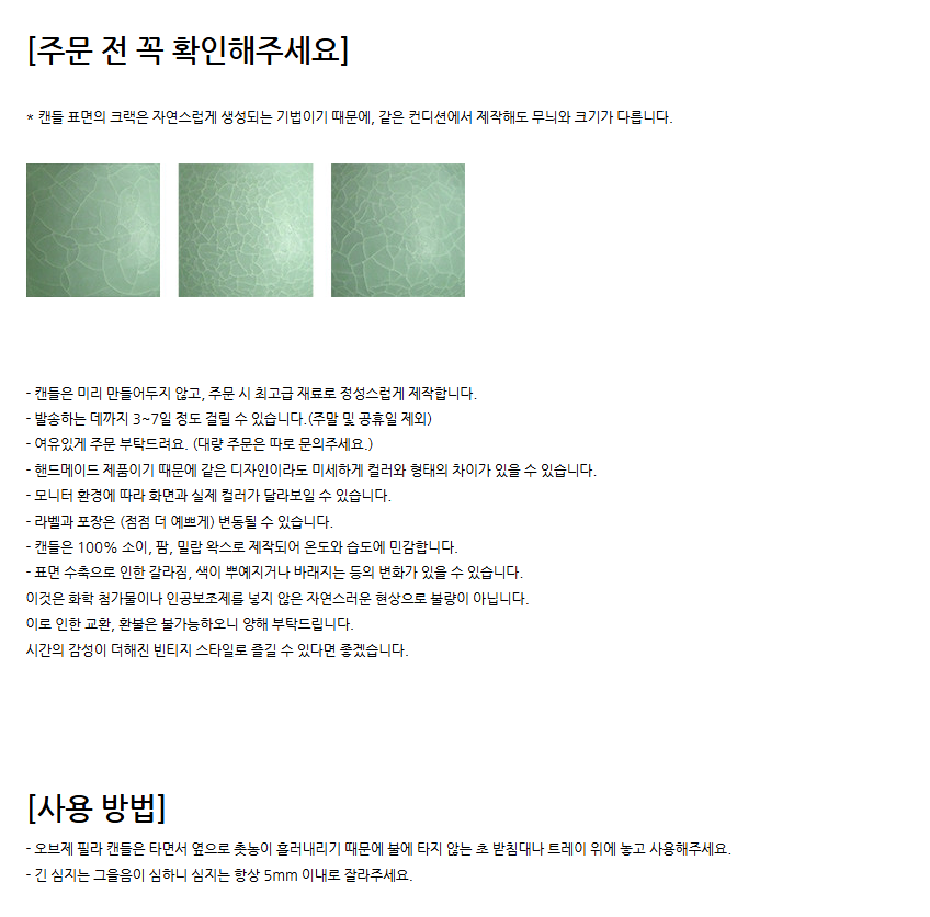 What truly sets this candle apart is the application of the authentic ceramic crackle (Crack) technique, creating a mesmerizing network of fine lines across its surface. This intricate detail not only enhances its visual appeal but also pays homage to the revered craftsmanship of traditional Korean pottery, making each candle a unique and captivating work of art.