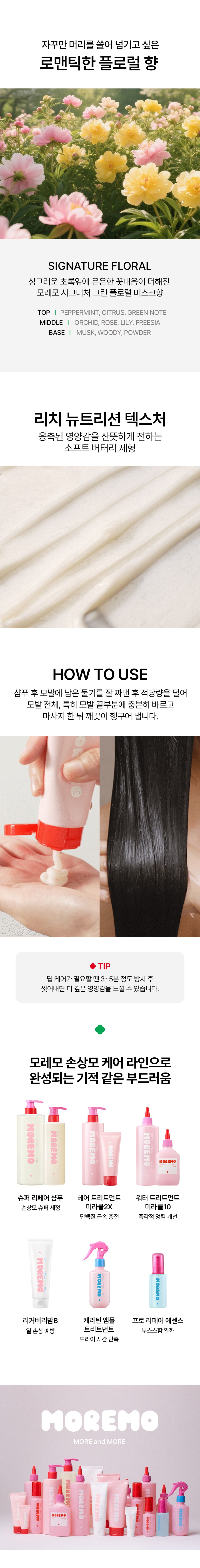 - Apply an appropriate amount of moremo Hair Treatment Miracle 2X to wet hair, focusing on mid-lengths to ends.