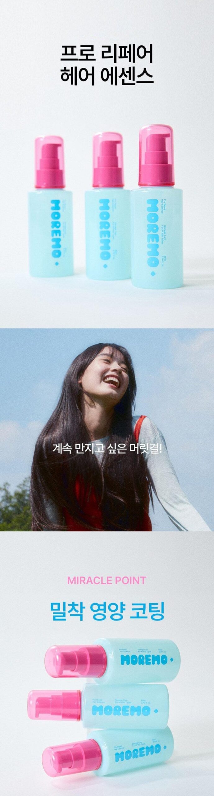 Give your hair the miracle touch it deserves—smooth, shine, and softness in every drop with Moremo Pro Repair Hair Essence.