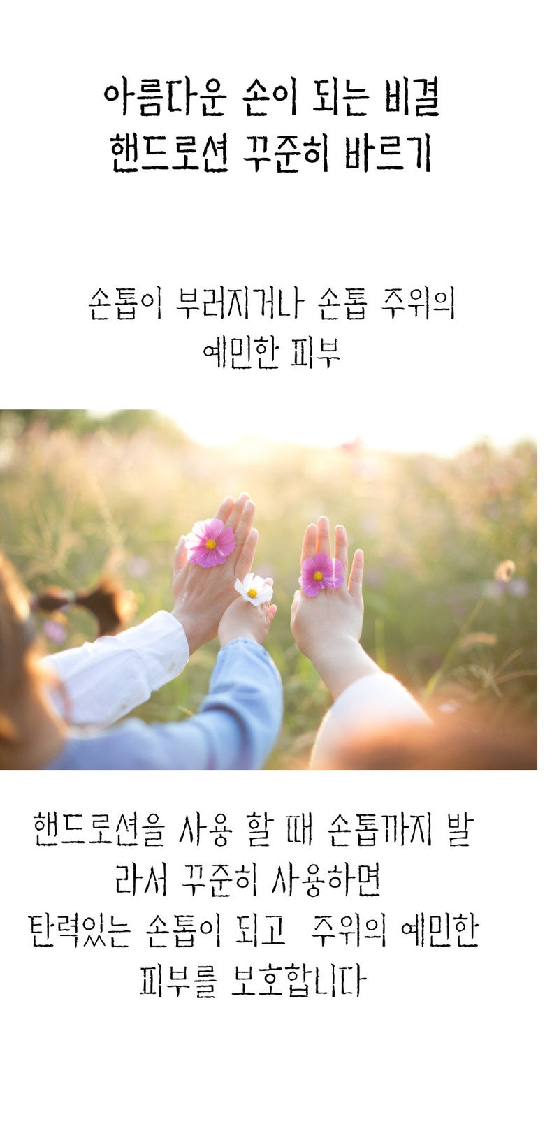 * When using hand lotion, apply it to your nails and use it consistently to create elastic nails and protect the sensitive skin around them.