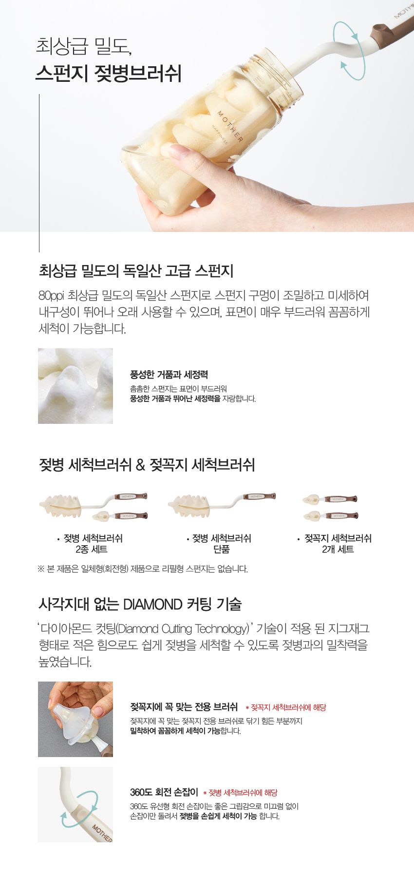 Premium quality nipple cleaning brush set from Mother-K, Korea’s trusted baby care brand. This 2-piece set is specially designed for thorough cleaning of baby bottle nipples and small parts.