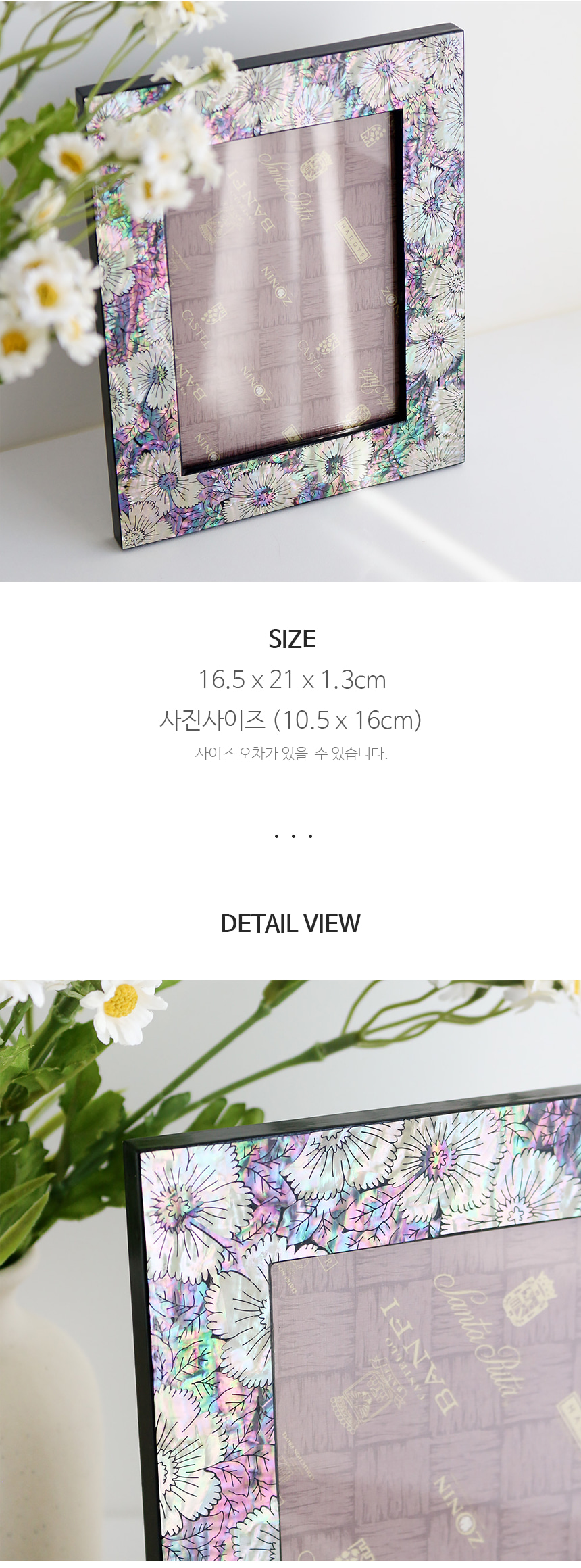 Enhance your living space today with this stunning Mother-of-Pearl Lacquer Flower Photo Frame!
