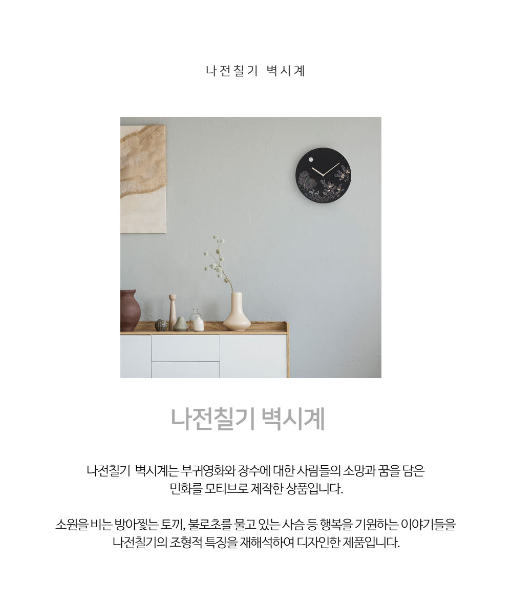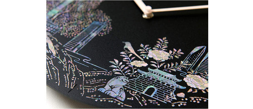 Enhance your space with the exquisite Mother-of-Pearl Wall Clock, a masterpiece inspired by traditional Korean folk paintings. Each design embodies the hopes and dreams for wealth, honor, and longevity, making it a meaningful addition to any home or office.