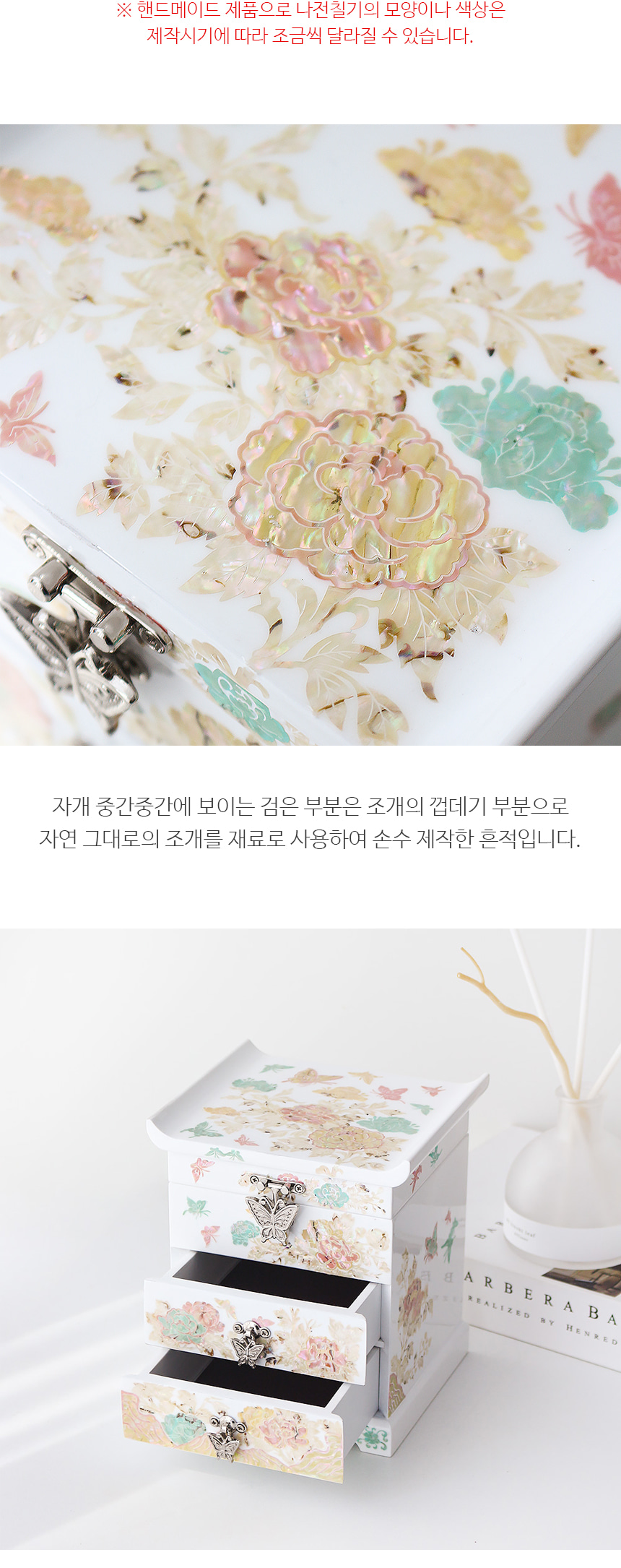 This stunning jewelry box showcases the meticulous artistry of najeonchilgi, a traditional Korean lacquerware technique. Each piece is crafted with care, capturing the essence of beauty and heritage.