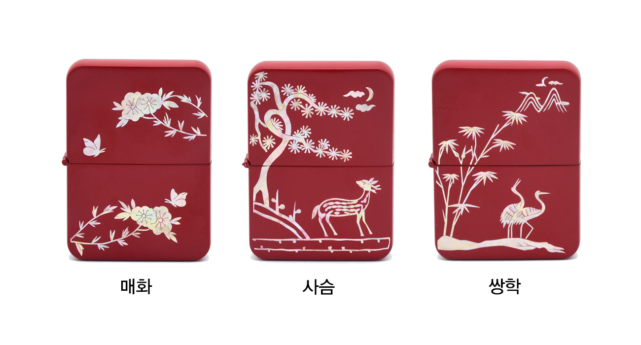 This nail clipper set features the “Sipjangsaeng” series designed in three different Najeon patterns.