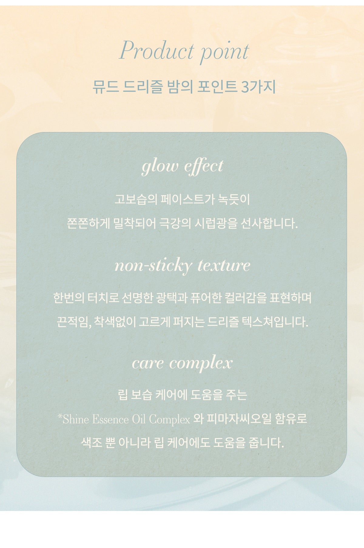 With just one touch, this balm delivers a clear shine and pure color. The drizzle texture spreads evenly, ensuring a smooth application without any stickiness or staining.