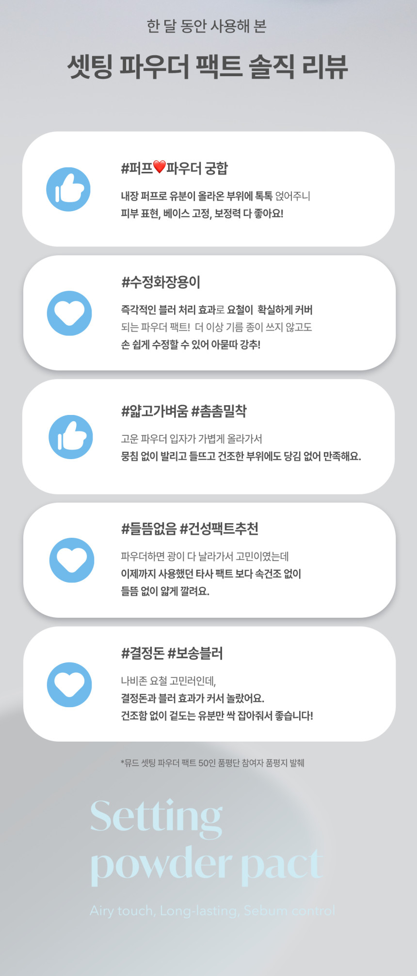 “I used to worry about powder making my skin look dull, but compared to other brands I’ve used, this one adheres closely without lifting and suits me well without dryness.” - #TextureRefinement #SmoothBlur