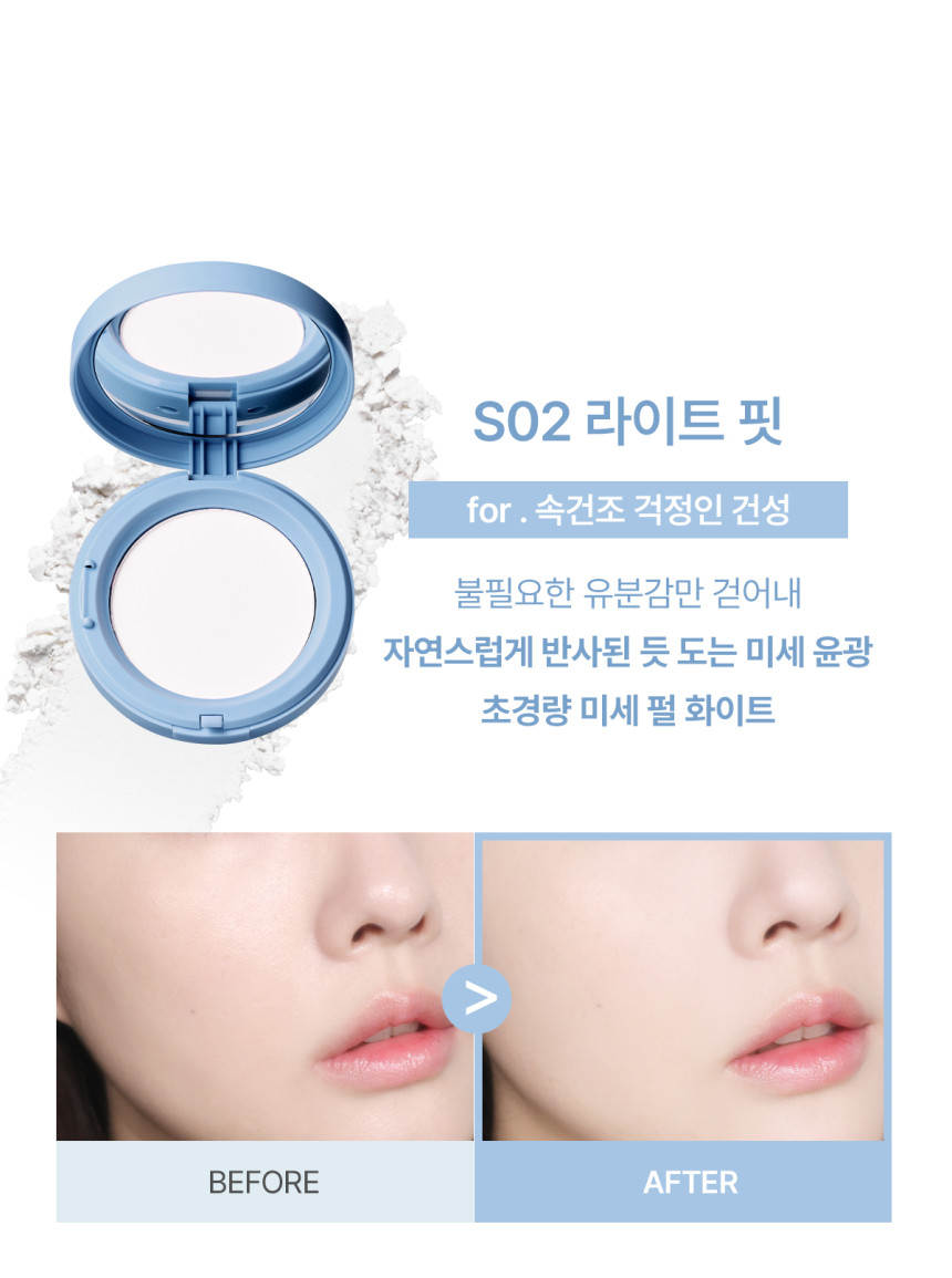 The S01 Blur Fit is your go-to solution for achieving a flawlessly smooth and refined complexion. This muted pale lavender powder provides a natural, vitalizing tone-up effect without appearing chalky or heavy on the skin. It’s expertly designed to cover pores and uneven texture, leaving your skin looking perfected.